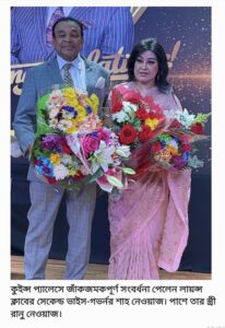 বক্তব্যের পালা শেষে শাহ নেওয়াজ এবং তার স্ত্রীর রানু নেওয়াজকে ফুল দিয়ে বিভিন্ন সংগঠন ও বিশিষ্ট ব্যক্তিদের পক্ষে সংবর্ধনা জানানো হয়। সংবর্ধনা জানানো উল্লেখ যোগ্যেদের মধ্য ছিল, বাংলাদেশ সোসাইটির ট্রাস্টি বোর্ড, নিউইয়র্কে লায়ন্স ক্লাব ইন্টারন্যাশনাল, নিউইয়র্ক বাংলাদেশ প্রেসক্লাব, জালালাবাদ অ্যাসোসিয়েশন, জামাইকা বাংলাদেশ ফ্রেন্ড সোসাইটি, অ্যাটর্নি মঈন চৌধুরী জামাইকা বাংলাদেশ এসোসিয়েশন, নিউইয়র্ক ইন্স্যুরেন্স কোম্পানি, গোল্ডেন এইজ হোম কেয়ার, সাপ্তাহিক আজকাল পত্রিকা সহ শতাধিক ব্যক্তি ও প্রতিষ্ঠান। পরে আপ্যায়ন ও সংগীত অনুষ্ঠানের মধ্য দিয়ে সম্বর্ধনা অনুষ্ঠান সম্পন্ন হয়।####