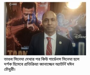 শুক্রবার (১৩ জুন) নিউইয়র্কের কিউ গার্ডেনসে রায়হান রাফী’র পরিচালিত ‘তাণ্ডব’ সিনেমা প্রদর্শনীর শুরু থেকে শেষ পর্যন্ত ছবিটি দেখে দর্শকদেরকে বিমোহিত হতে দেখা গেছে।