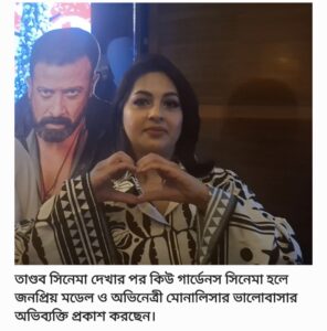 দীর্ঘদিন ধরে নিউইয়র্কে বসবাস করা, এক সময়ের জনপ্রিয় মডেল-অভিনেত্রী মোনালিসা তাণ্ডব সিনেমা দেখার পর উচ্ছ্বসিত প্রশংসা করে বলেন, এক্সিলেন্ট, অসম্ভব সুন্দর হয়েছে। প্রতিটি সেকেন্ড আমরা এনজয় করছি। এরকম ছবি আরো বেশি দেখতে চাই।